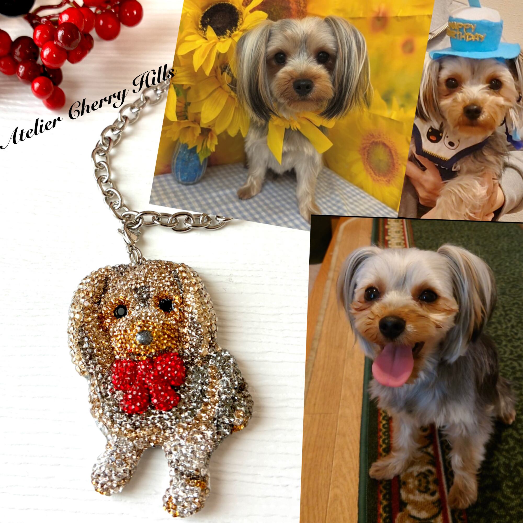 ペットのわんちゃんの特徴を捉えつつ、かつ可愛らしく、各色数百個に及ぶヨーロッパの高品質なクリスタルをふんだんに使って、バッグチャーム(キーホルダー)、ブローチ、オーナメント、又はフォトフレームにお仕立て致します。しっかりとした板状の補強材を使用し、立体感を持たせて表情豊かにお作りしています。極小クリスタルも駆使して細部まで拘った仕上がりです。