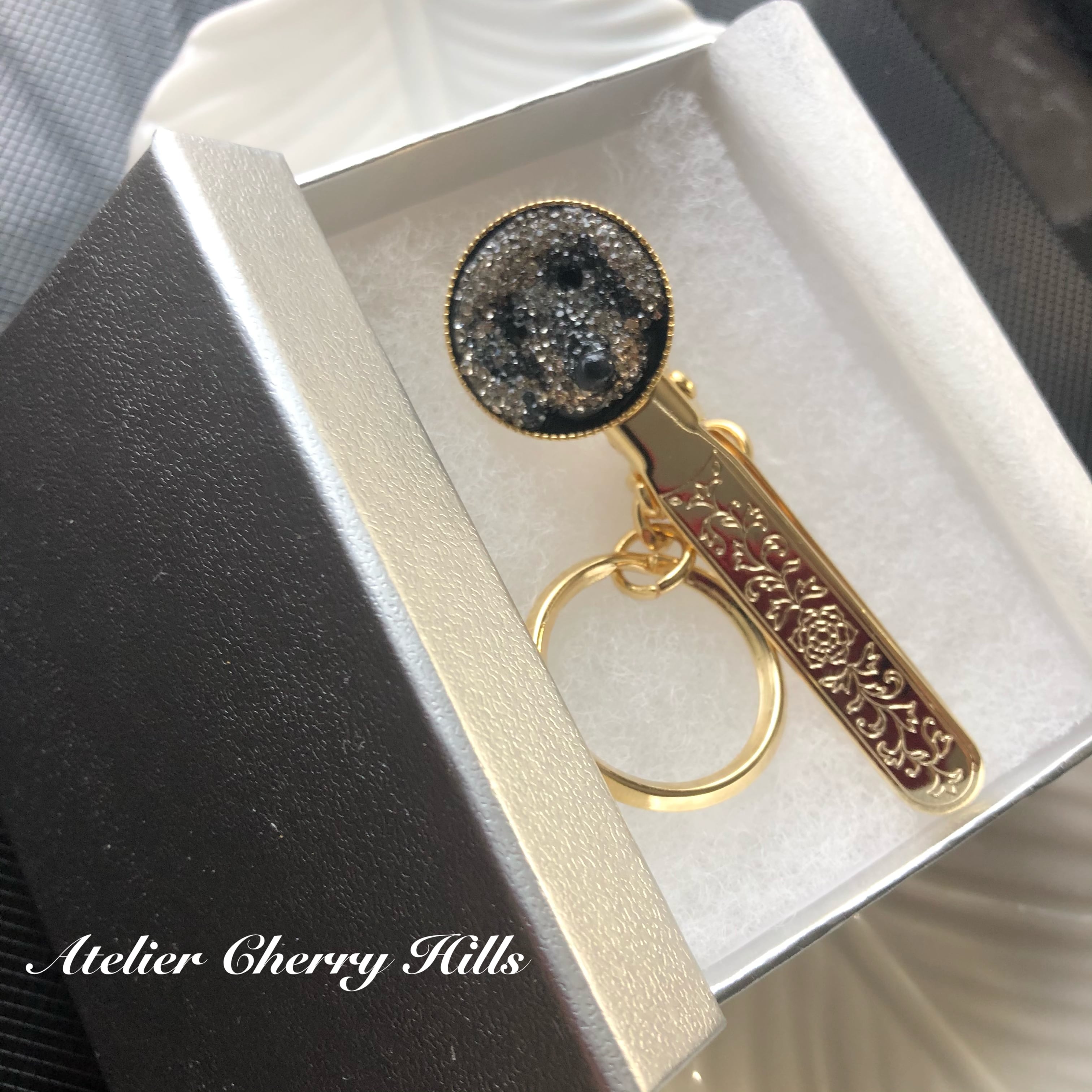 可愛いペットのわんちゃんを、ヨーロッパの高品質なクリスタルをふんだんに使ってバッグキークリップにお仕立て致します。